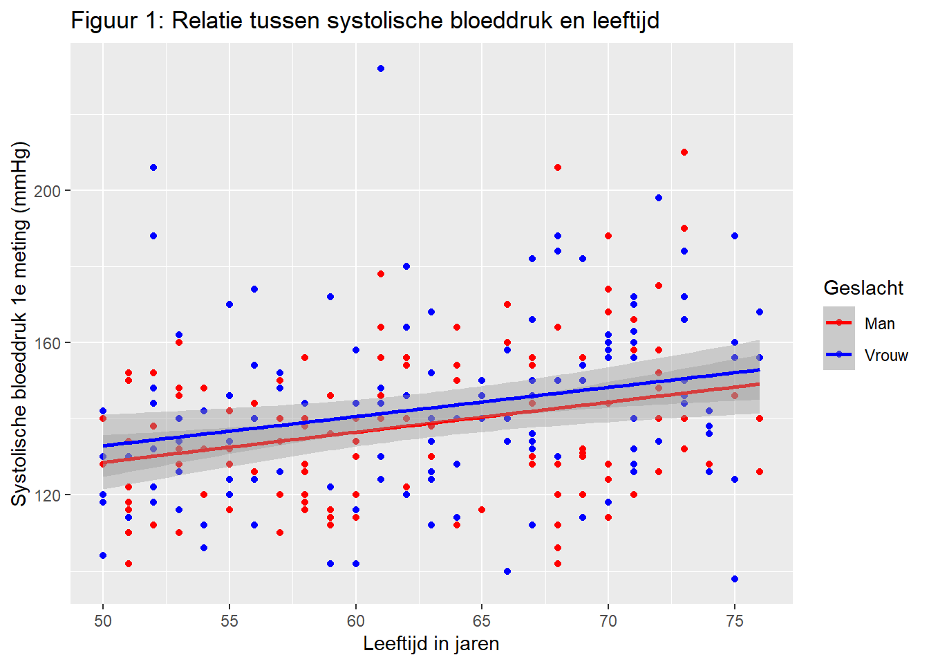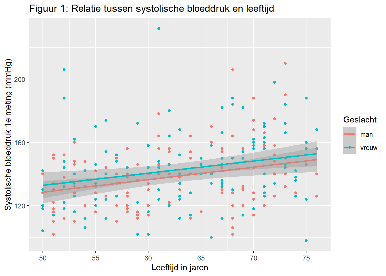 title = "Figuur 1: Relatie tussen systolische bloeddruk en leeftijd",
